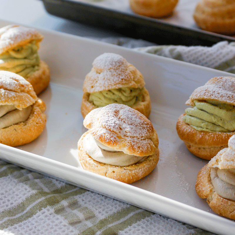 Hojicha and Matcha Cream Puffs